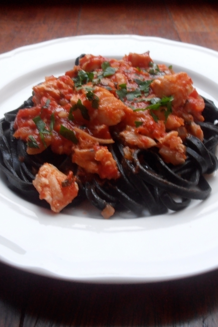 - Mix with the black pasta and serve sprinkled with the chopped parsley.