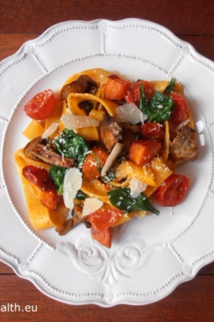 - Pour the dressing over the vegetables, mix well and move onto a big serving plate (or 2 small ones).